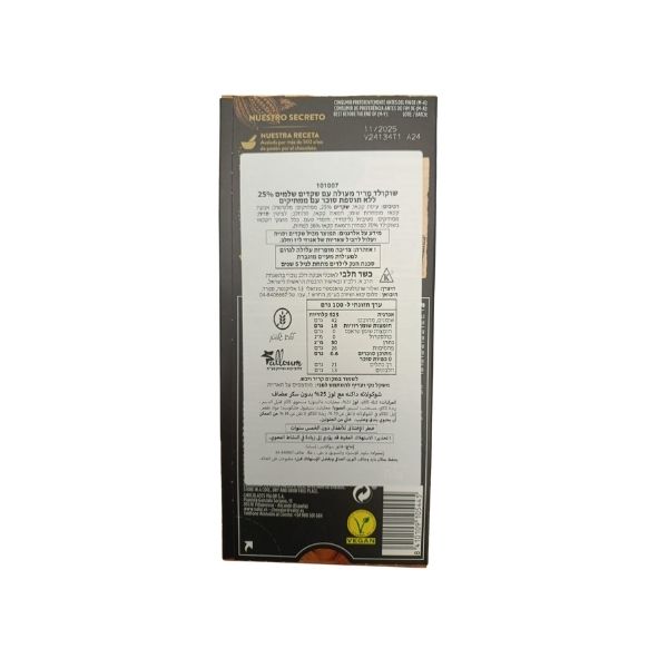 שוקולד מריר מעולה 85% קקאו מבית ואלור- עם שברי שקדים. ללא תוספת סוכר , עם ממתיקים